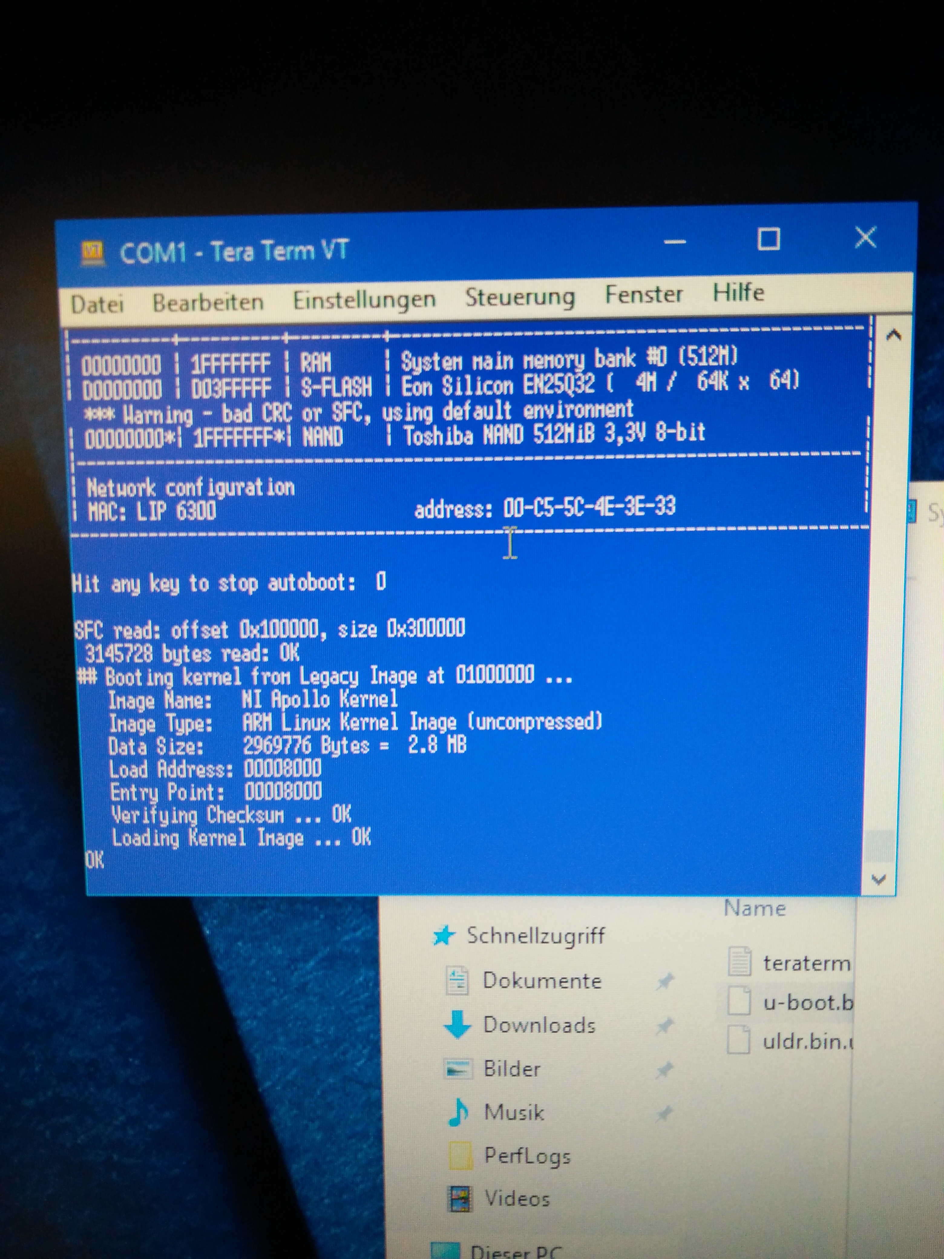 uldr.bin.uartboot_imgDie Übertragung sollte jetzt starten. Nach Abschluss ..