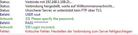 wenn ich root:: habe wird mir nix angezeigt in filezilla, wenn ich es so wie oben habe komme ich auf die Box, kann überall alles durchgehen und anzeigen lassen aber wenn ich versuche etwas zu übertragen, zeigt mir filezilla wieder an, dass das Passwort falsch ist.