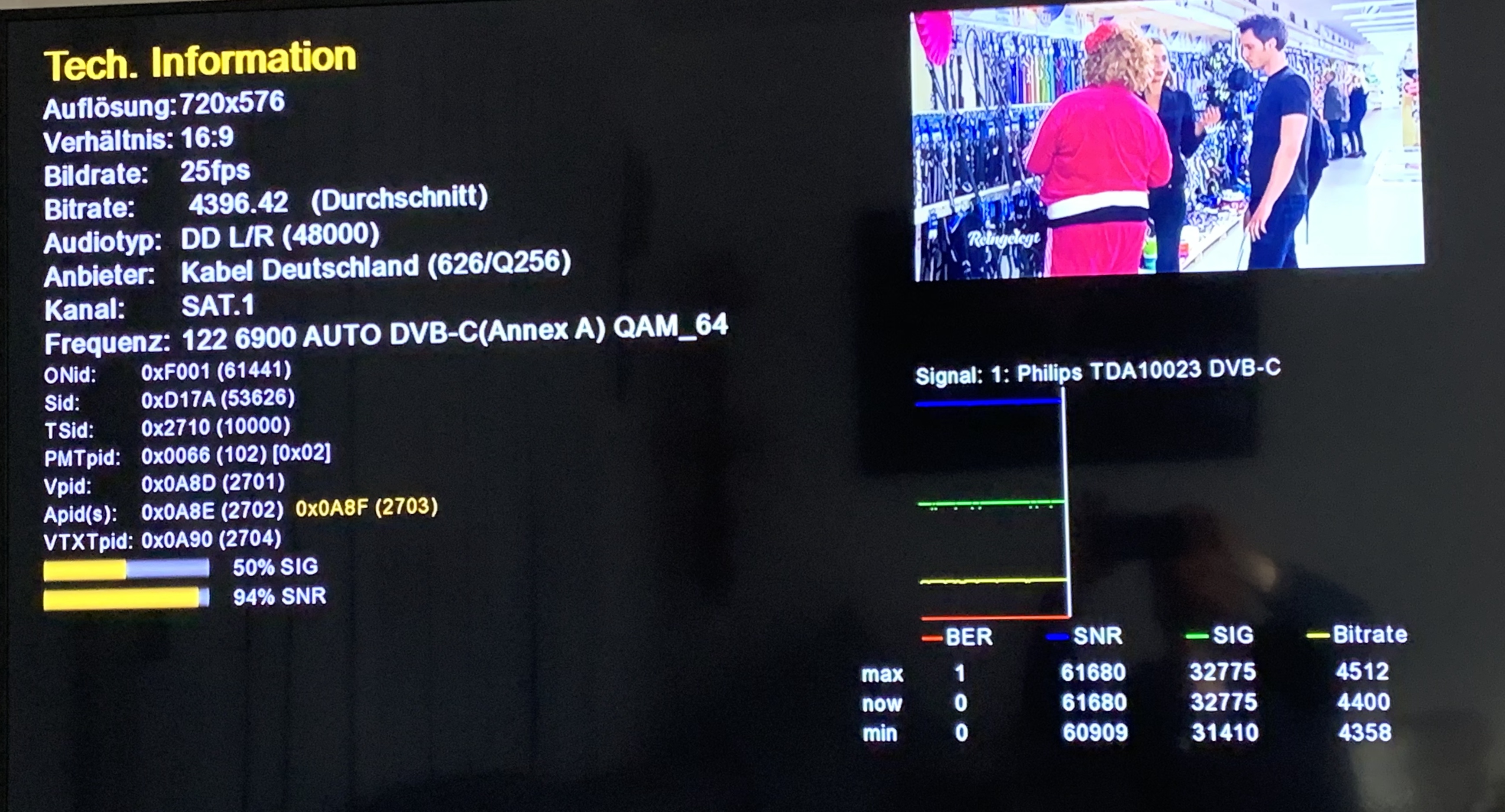 Mittlerweile habe ich lediglich einen Fehler bei 2 Sendern (Sat1 und RTL) zum Teil viele Artefakte. Es ist Tagesabhängig und kaum möglich eine Sendung zu sehen.