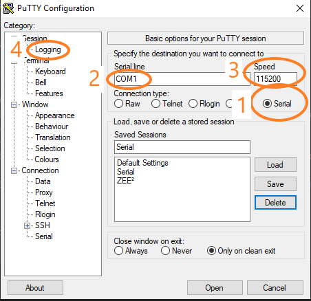 Der Box Strom geben und Log verfolgen. Log wird geschrieben, Putty beenden und Logfile hier hochladen.