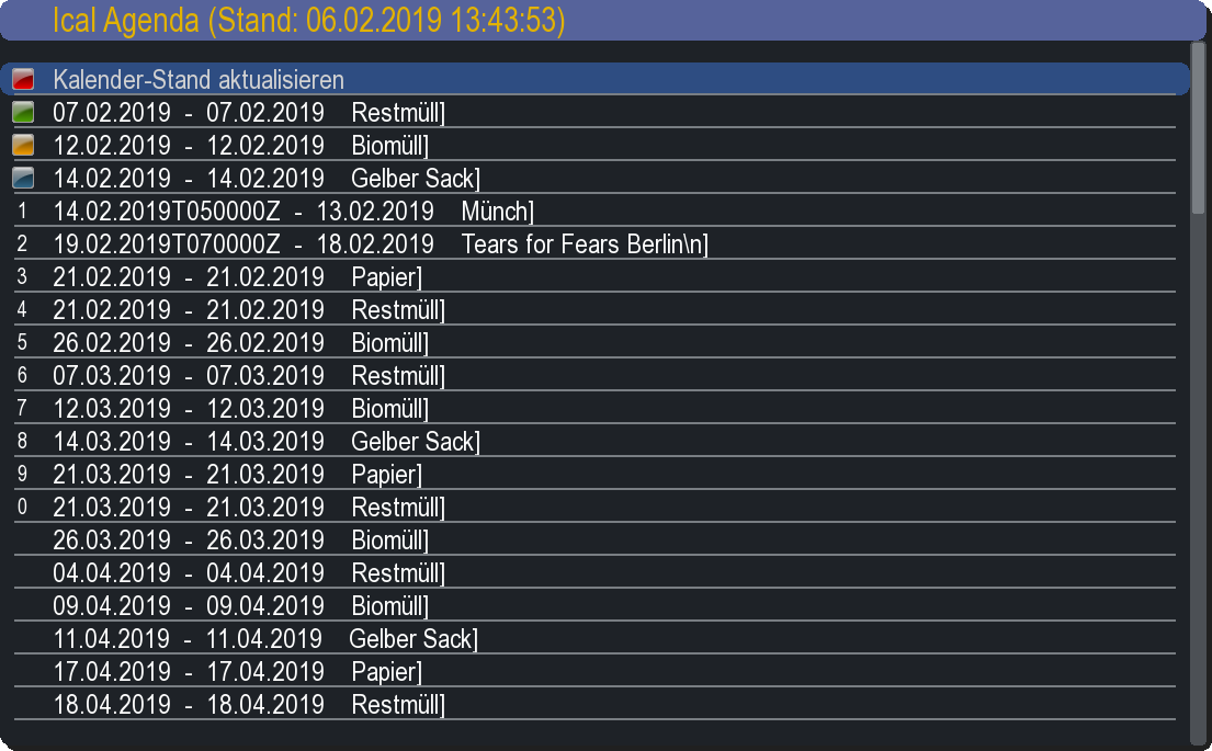 Getestet habe ich das Plugin mit einer Ical-Datei von Rainlendar2.