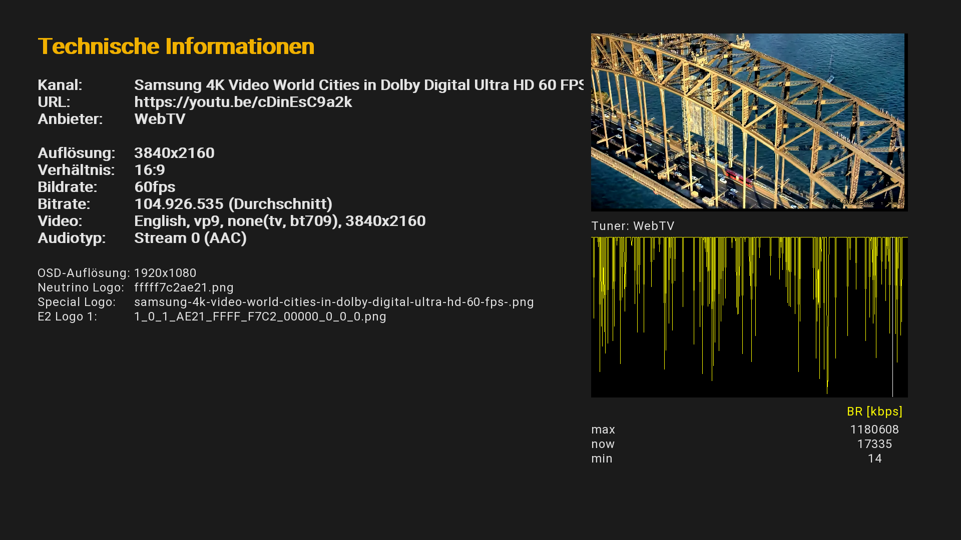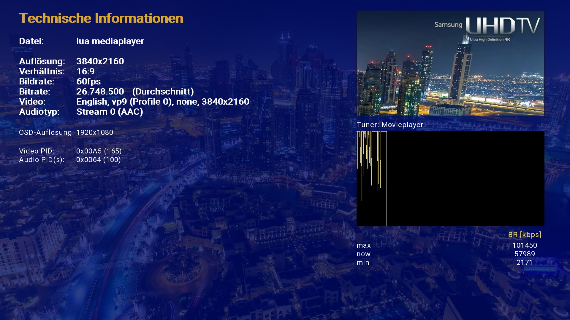 1. gibt es hier keine UHD SenderBPanther hat geschrieben: ↑Do 18. Nov 2021, 15:41 Inzwischen konnte ich das leichte ruckeln - und mehr ist es auch nicht - mit "Joe Jedermann" (Komödien, mit 9 vorspulen auf 10 Min.) nachstellen. Ist aber sowohl auf einem HD als auch UHD nicht sonderlich stark/störend zu sehen. Schaltet man beim UHD auf 2160p30 oder beim HD auf 1080i60, 1080p60 oder 1080p30 um ist es natürlich komplett weg. Eine Auto-Umschaltung ginge nur bedingt, denn