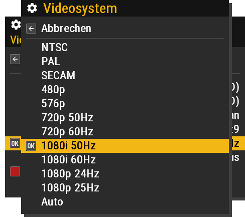 Video zurück auf "1080i 50Hz" -> OSD bei HD noch immer weg