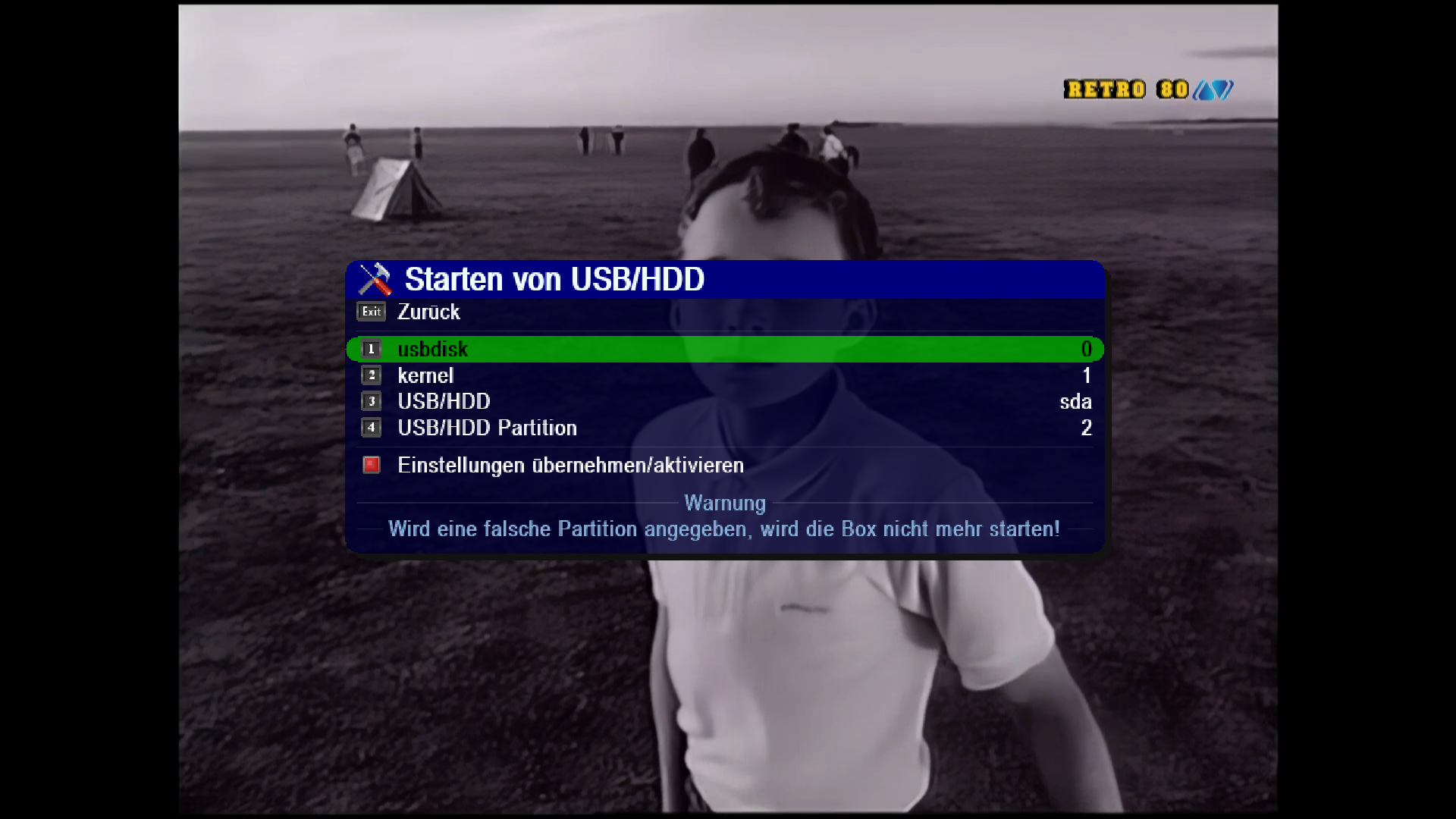 Auch das Startbild passte sich dem dann an, aber nur mit Angabe das von USB/HDD gestartet wurde bzw. diese Partition gerade aktiv ist, keine weiteren Angaben über das Image (war mir erstmal nicht so wichtig).