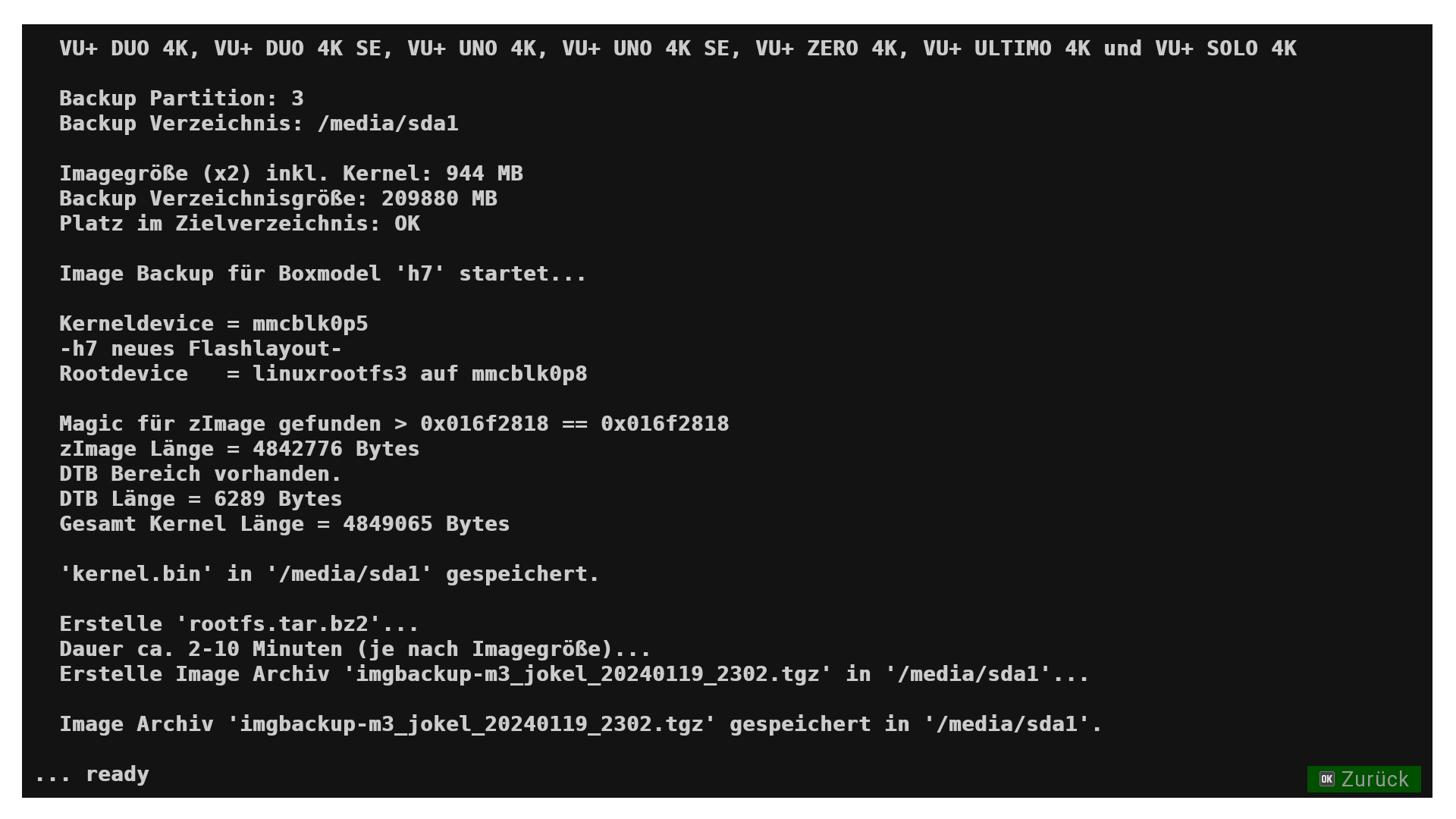 nach reboot funktioniert das imgbackup nun....