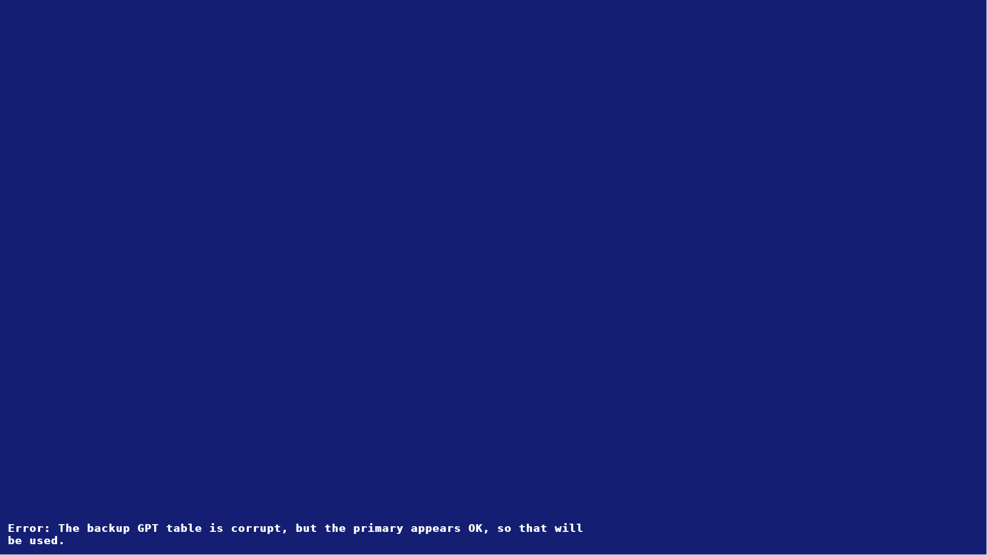 Backup partition table: ERROR