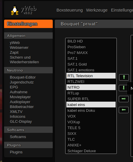 Dort im Bouquet Editor kannst du mehrere Sender markieren und nach oben oder unten schieben.