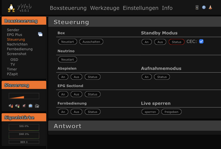 Es gibt halt keine Optionen! (und auch keine Alternativen). Wenns denn überhaupt nicht geht verkaufe ich die Box. Sehr stabil läuft sie eh nicht, spätestens bei großen Web-TV Listen schmiert sie nach einer Zeit ab. (EPG einlesen?) Die CPU ist auch oft recht hoch ausgelastet, das könnte am USB der Festplatte liegen.