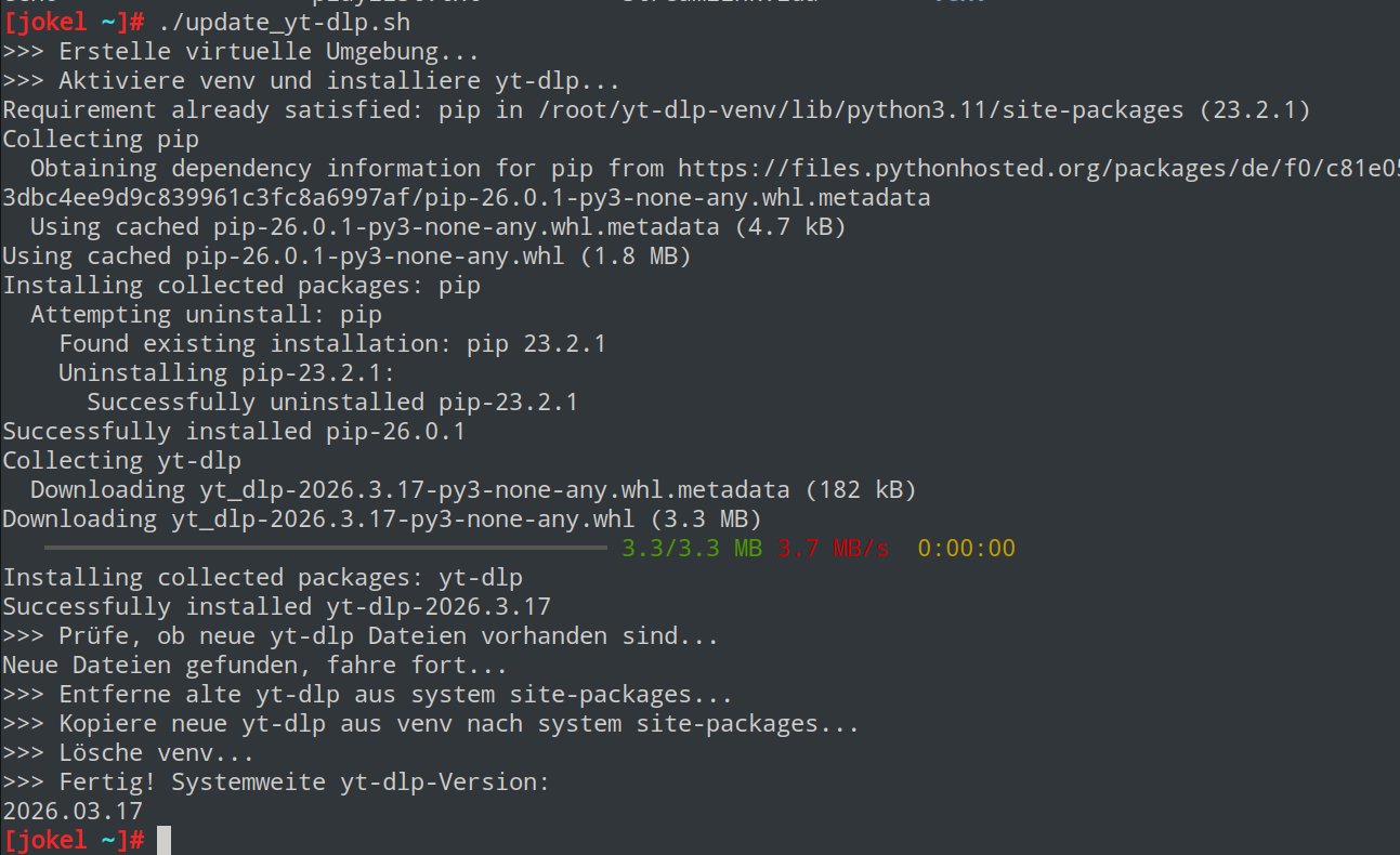 Danke. Ich habe pip und yt-dlp aktualisiert.