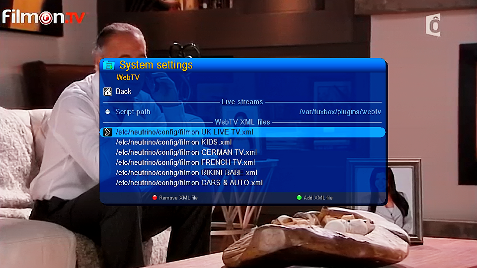 Oder gleich die ganze filmon.xml, damit ich die mal mit meiner vergleichen kann.