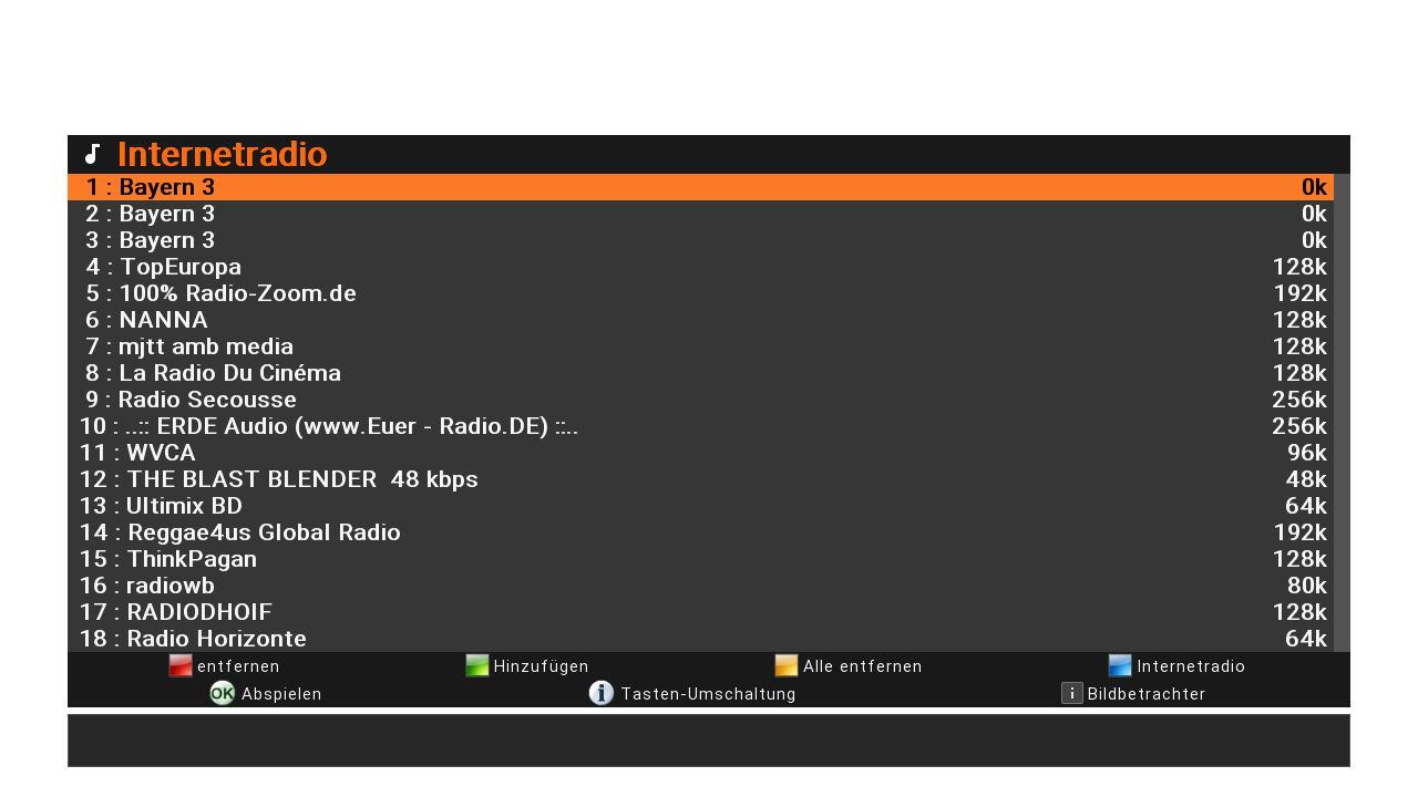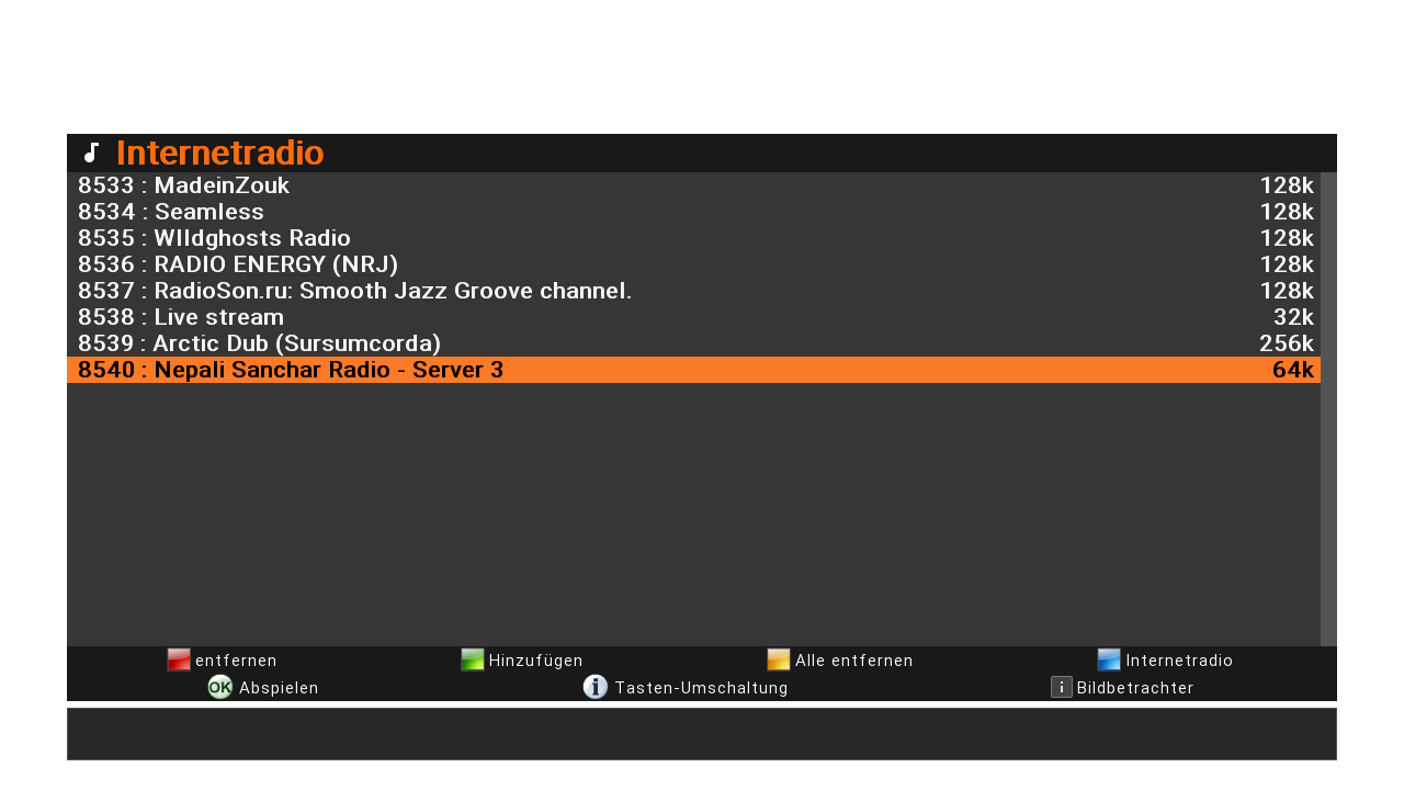 wenn ich Icecast in den Audioplayer laden möchte kommt nur "Liste wird empfangen, bitte warten.." danach springt er zurück zur Playliste ohne etwas von Icecast.