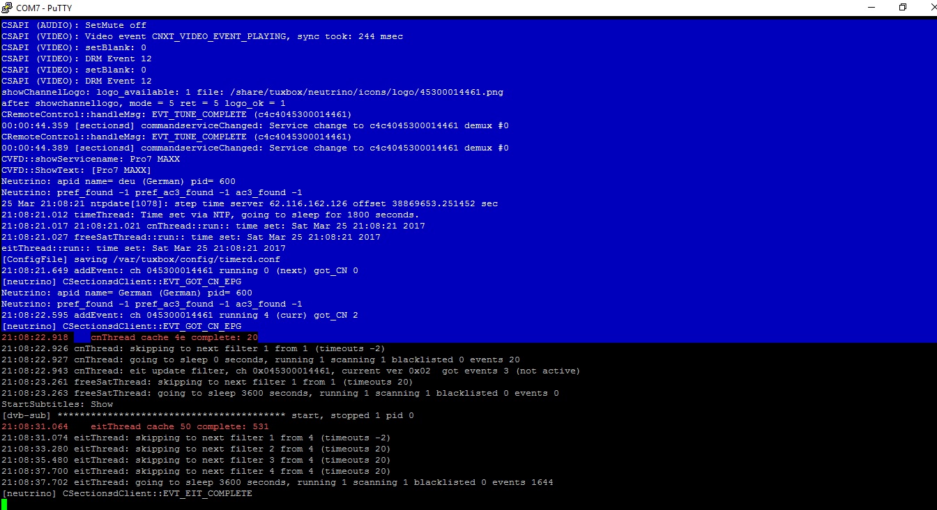 Zwar etwas später als geplant, habe ich aber jetzt um das Thema in diesem Thread mal abzuschliessen Putty getestet mit dem neuen NullmodemKabel. Meine Vermutung weiter oben wurde bestätigt: Der Buchstabensalat lag tatsächlich an dem vermurxten alten Kabel. Mit dem neuen läuft einwandfrei, siehe Screenshot. Also alles gut wieder!