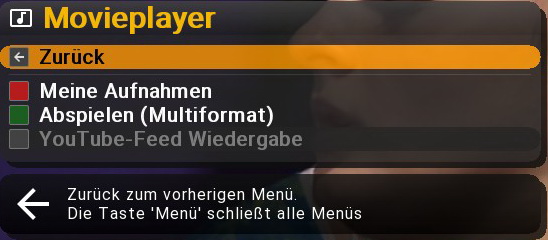 Box neu gestartet, aber Ich kann kein Youtube feed starten da das Menü weiter ausgeraut ist.