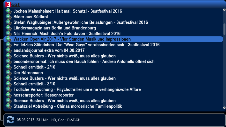Wer das Plugin 3-Sat-Mediathek von @ bazi98 installiert hat, kann innerhalb der nächsten Tage nochmal eine 4 stündige Zusammenfassung des Wacken-Festivals 2017 anschauen.