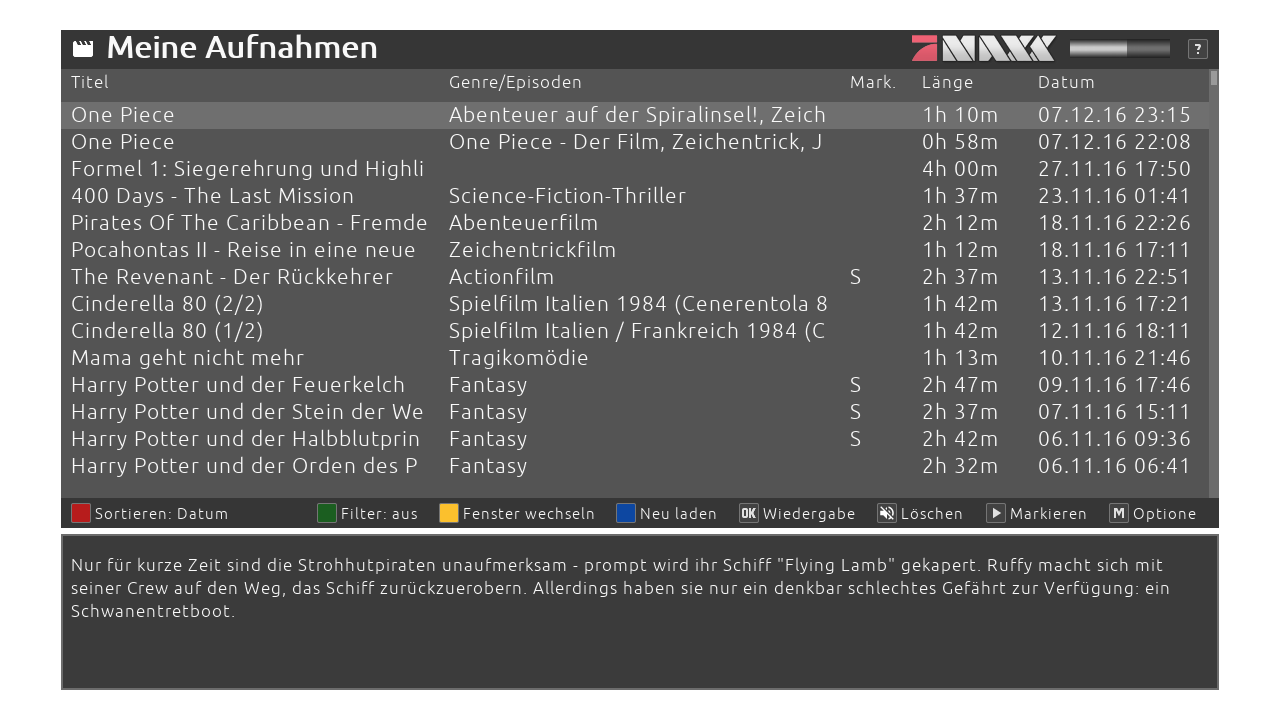 mirz hat geschrieben:Ich könnte mich damit anfreunden, wenn im Movieplayer das Aufnahmedatum um die Uhzeit erweitert werden könnte.