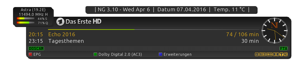 Vielleicht in den Infobar Einstellungen zuschaltbar , Wetter ja/nein , und anstatt des Image Hinweises (NG3.10) ,