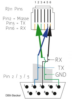 Mist ich habe nur 4 polige RJ14 Stecker, da fehlt mir dann Pin 6.