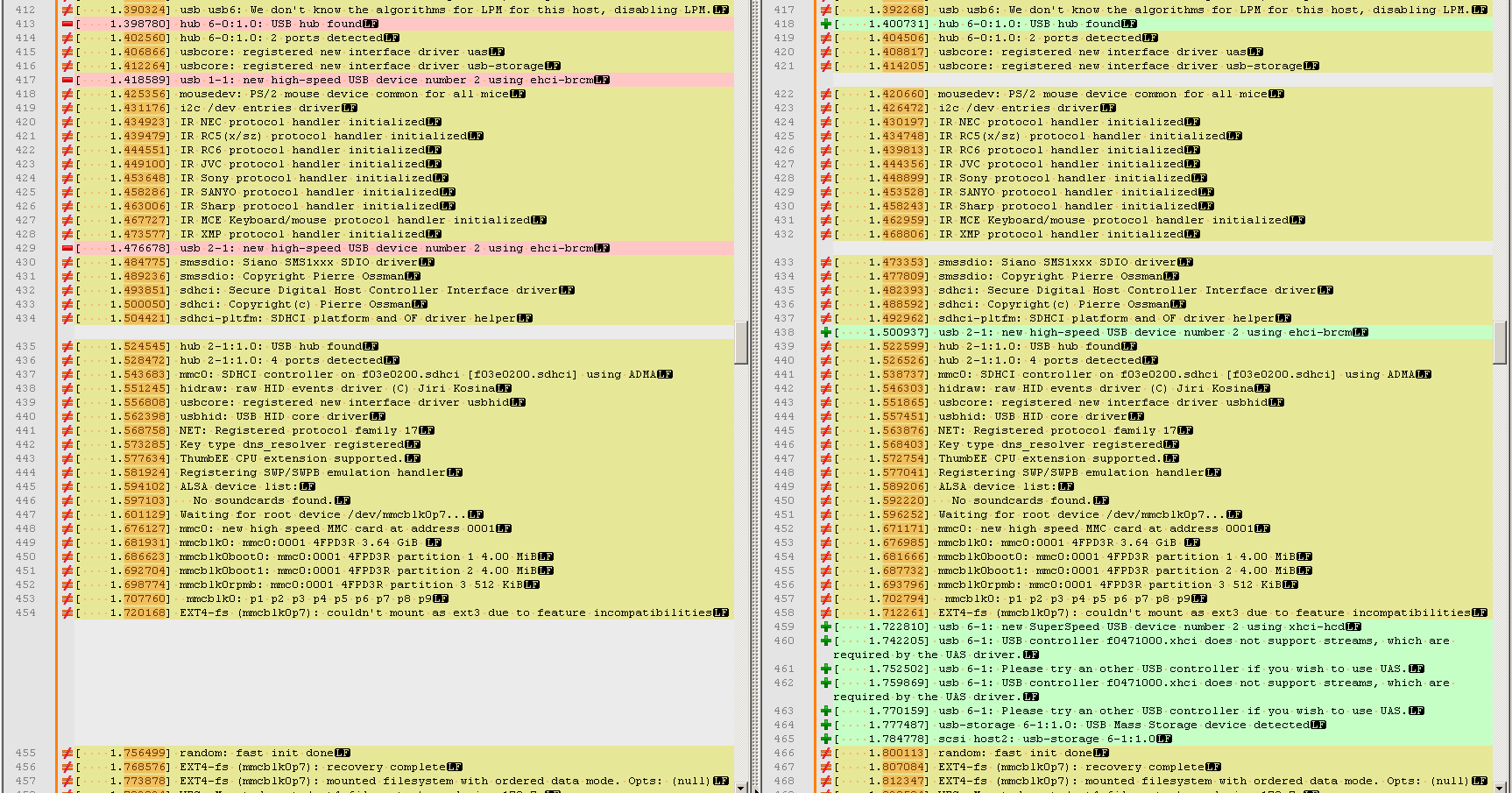 scheint eher ein Problem des Kernels zu sein, siehe Bild. Dort ist Links das Log ohne Hdd-Links und Rechts das normale Log.