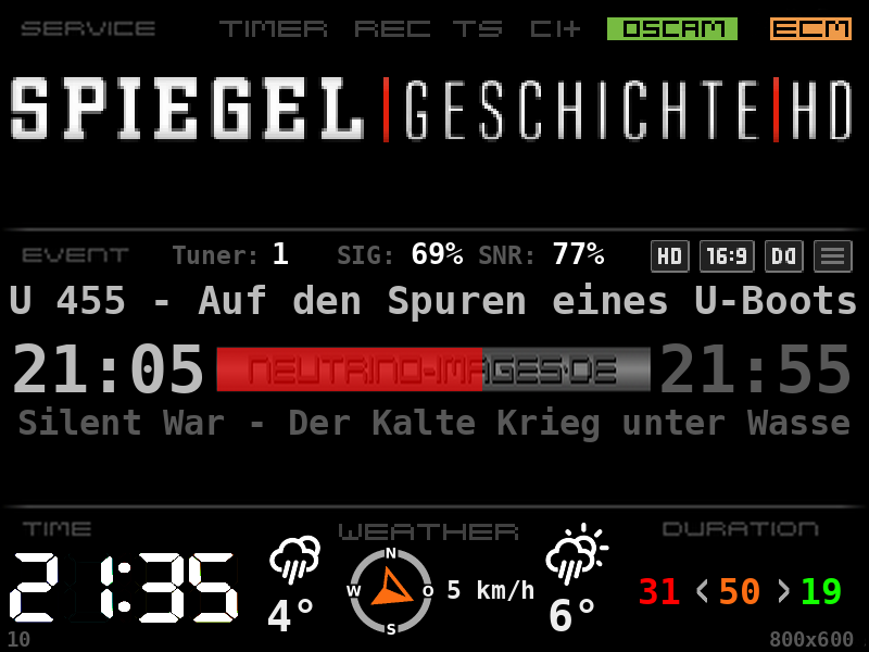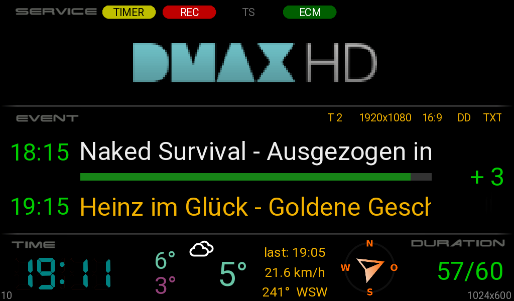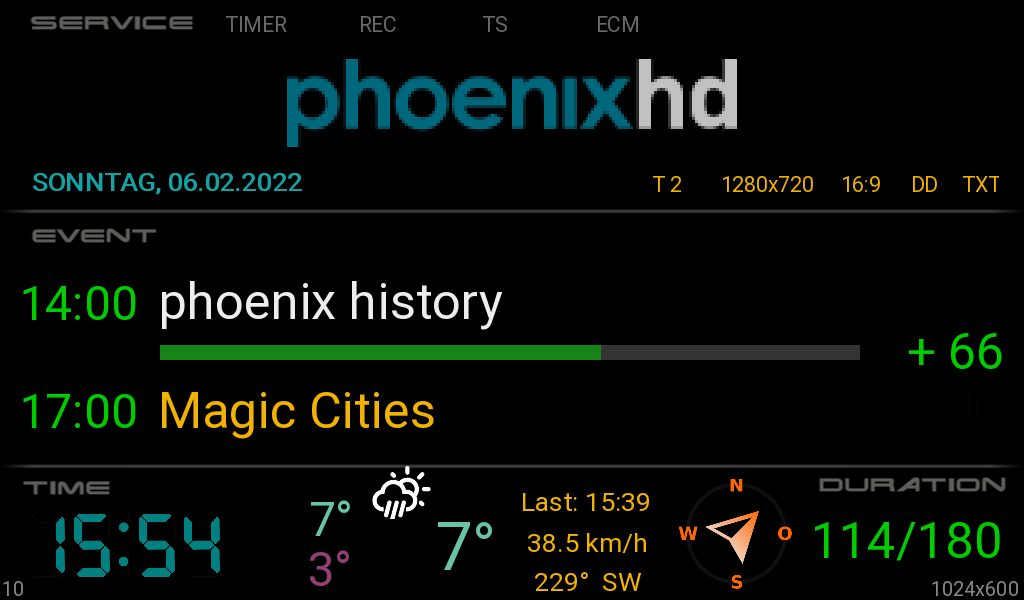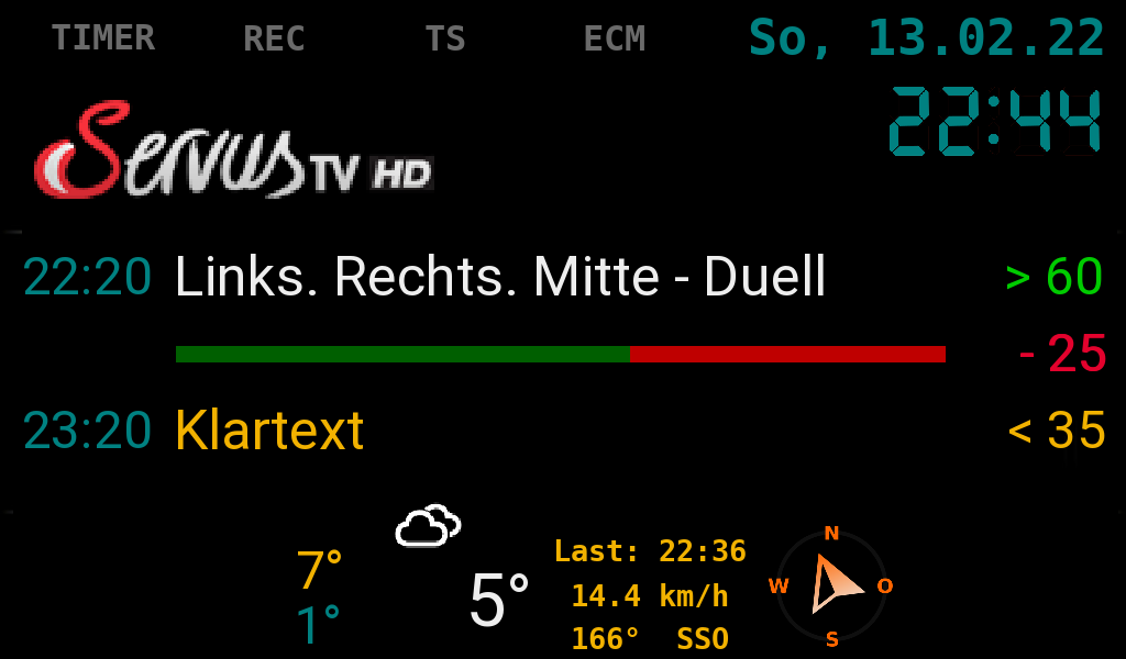 Da beim TTF der Text skaliert wird, ergibt sich aber immer ein komischer Effekt, wenn der Sendungstitel recht lang ist und der Font rechts eine andere Größe und Anordnung hat, als die dazugehörige Uhrzeit links.