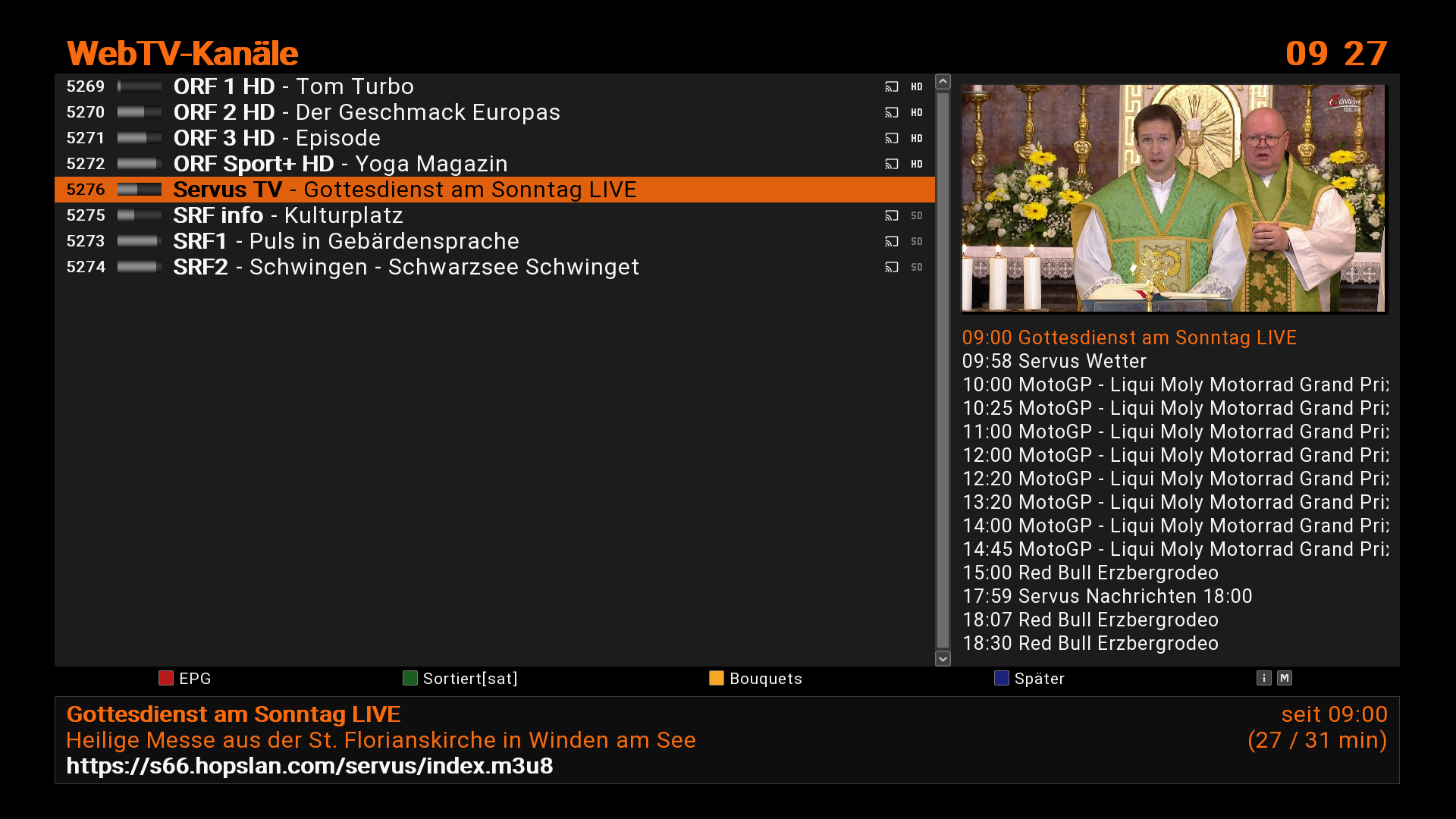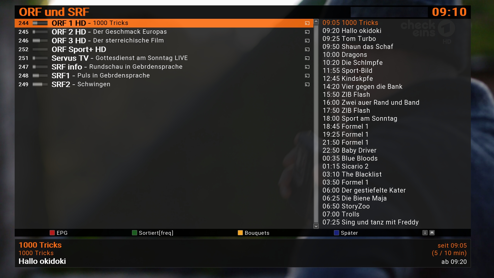 Aktuelle ORF und SRF Sender mit EPG.
