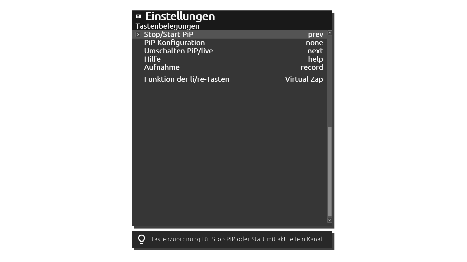 Dazu müsste es dann aber die Funktion irgendwo im NI unter Tastenbelegung geben. PIP ist nicht aufgeführt. Daher kann ich die Tasten auch nicht definieren.