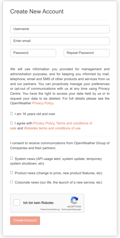 Darauf hin habe ich direkt mal den Link aufgerufen bei Openweathermap.org und bekam den selben Fehler.