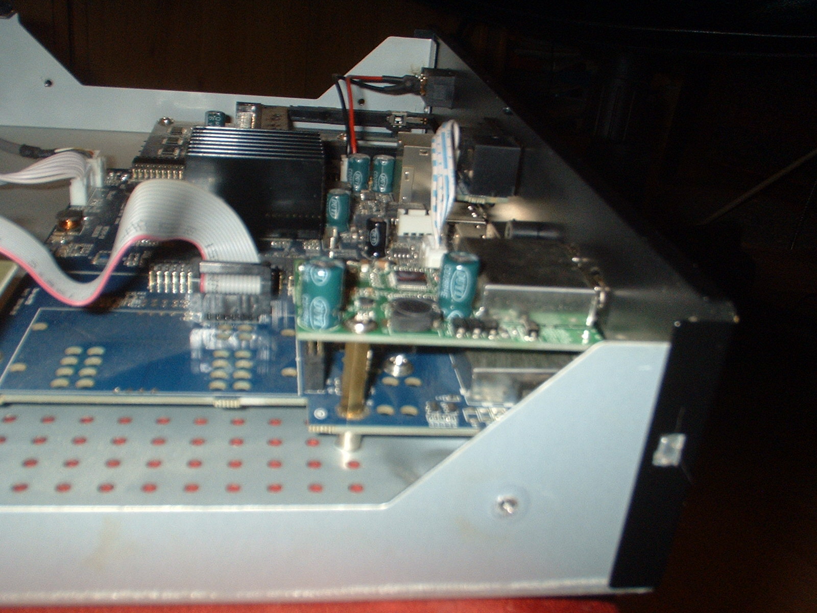 Anzeige bleibt bei CST hängen , kein voller Strom wohl vorhanden , sogar die rote Leuchte beim SPDif-Anschluß fehlt , zwischen dem Metall-Käfig vom Ethernet/USB-Anschluß und dem Bauteil auf dem " Pulse " aufgedruckt ist befindet sich der SMD-Kondensator C-123 , der ist verschmort ...