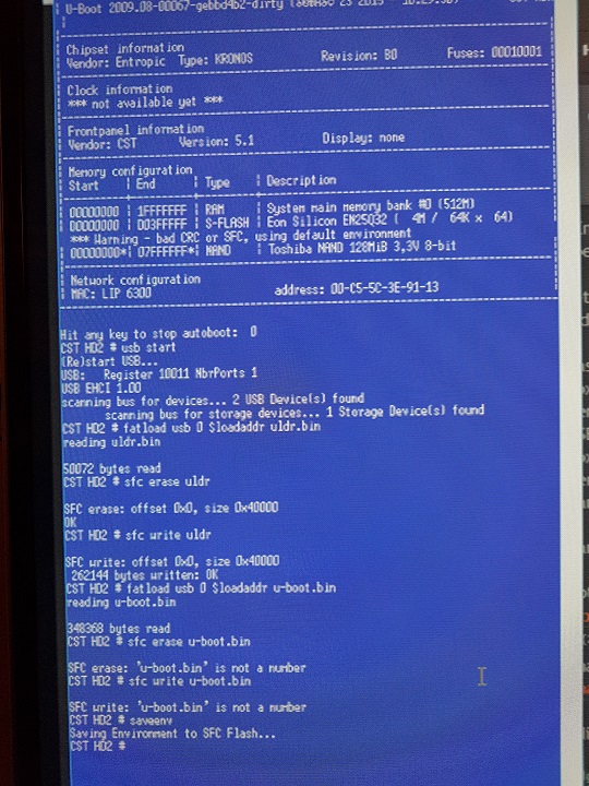 ich habe schon beide Versionen ausprobiert, beim Bootlog mit Putty fehlt am ende CST HD2 _ und man kann keine weiteren Befehle eingeben.