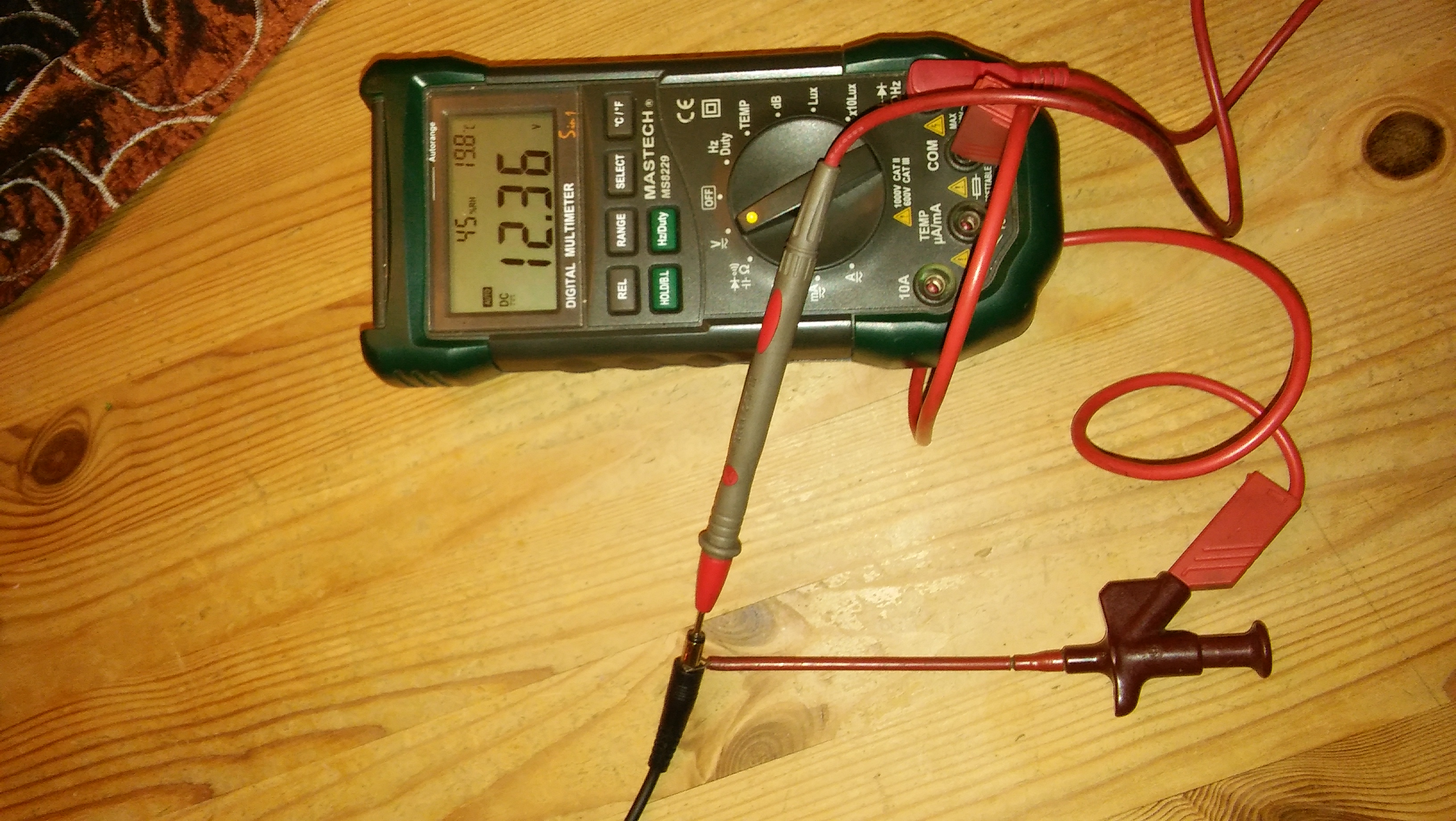 Das ist doch Käse wenn die Spannung am Hohlstecker gemessen wird. Das sollte unter Last, sprich im gesteckten Zustand passieren. Besser mit einer Standard Glühlampe wie sie im Auto steckt testen. Eine Stopplicht Glühlampe , 12V/21W, sollte einer Trinity entsprechen. Wenn die an bleibt, ist das Netzteil ok. Dazu brauchts auch kein Messgerät.