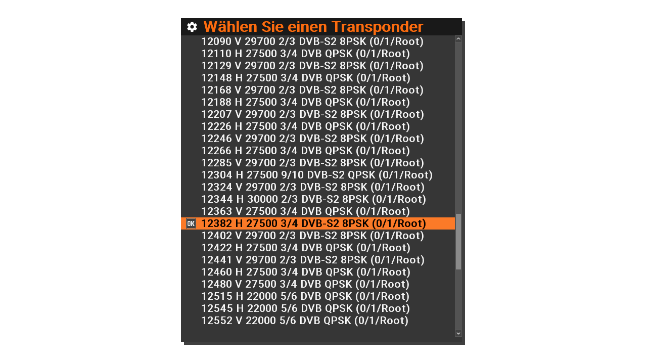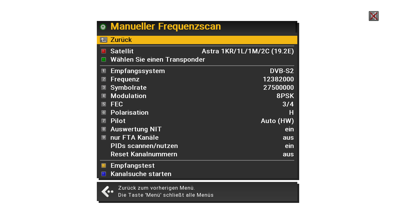 Warum muss ich diese Transponder 12382000 immer "Manueller Frequenzscan"abscannen und endern auf 8psk,3/4?.Warum klappt nicht mit "Automatische Suche".?