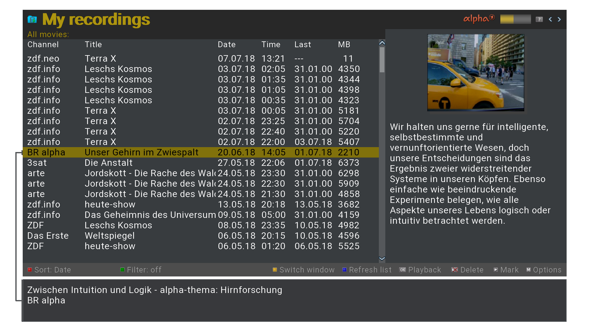 Re: Datumsanzeige noch nicht abgespielter Aufnahmen