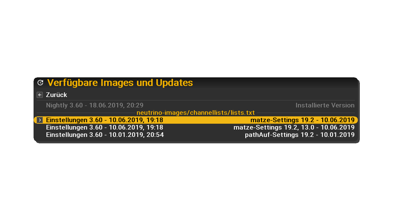 nachdem ich meine Neo2 auf die 3.60er Version vom 18.06.2019 upgedated habe, zeigt diese keine neuen Versionen mehr unter den Online Updates and. Die Senderlisten hingegen sind nich zu sehen.