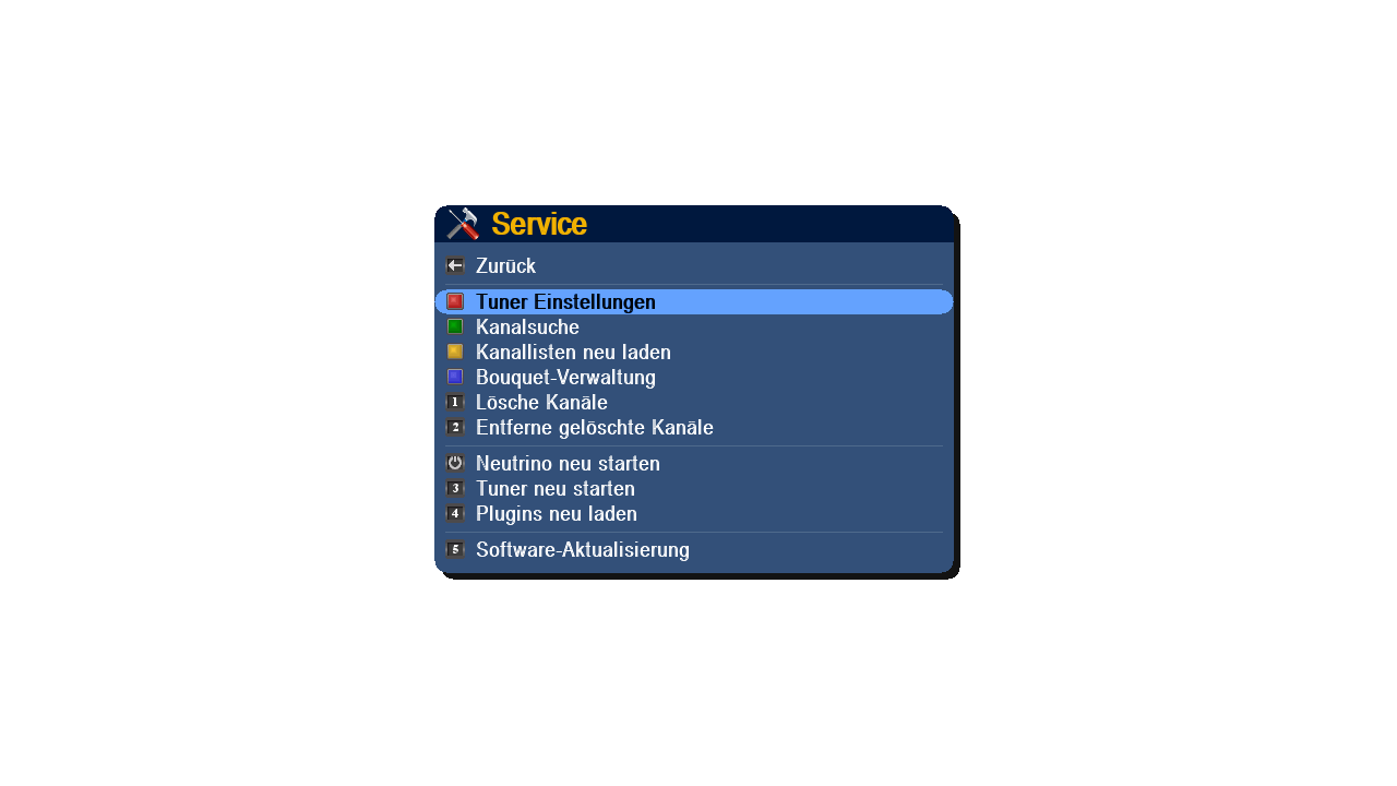 die Tunereinstellungen sind eine Ebene höher, als direkt in Menu->Service.