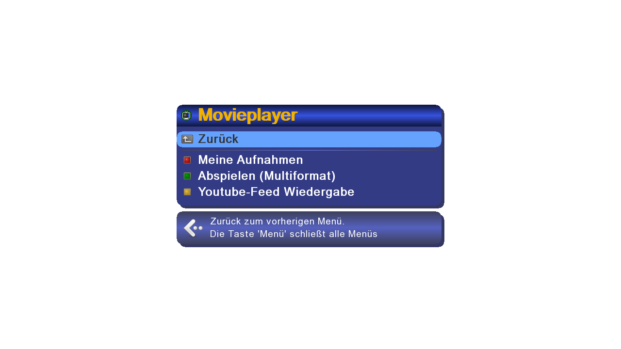 ich habe seit der coolstream nie mehr den Multiformatplayer genutzt. 1. weil zu hd1 Zeiten kaum andere Formate unterstützt wurden und 2. seit HD2 recht schnell auch andere Formate über "Meine Aufnahmen" abspielbar waren. Und "Meine Aufnahmen" erreicht man viel bequemer über die Play Taste.