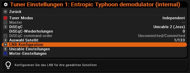 die Werte vom LNB hatte ich alle auf default gelassen. Wo müsste ich denn das einstellen? Ist das der LNB Low Offset? Und die anderen Werte?