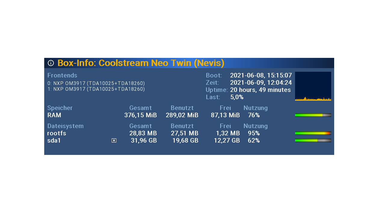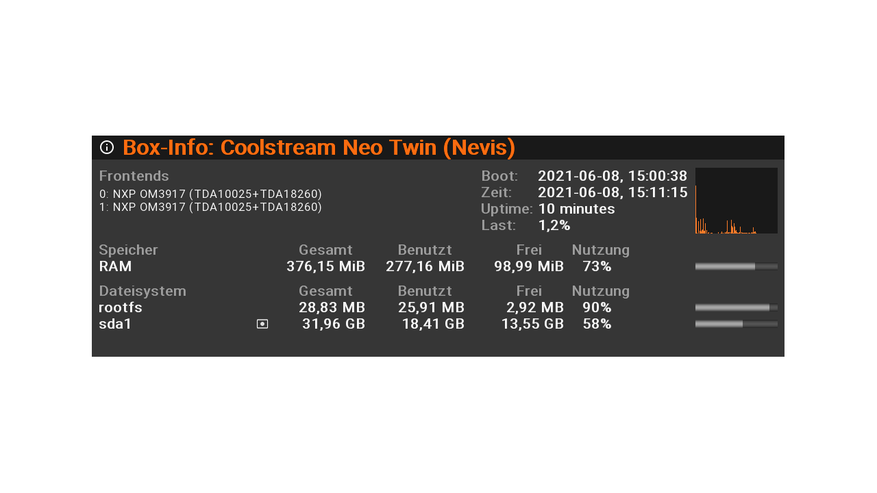 hat alles gut geklappt , mir fiel nur auf das der Kernel ein Update bekam , das dauerte nur einen kurzen Moment , konnte alles auf dem großen Display nachlesen ( wie auch auf der Tank möglich ! ) , leider kein Log davon , aber 2 screenshots von Box-Info , einmal ohne rückspielen der Settings und einmal mit den Settings ...