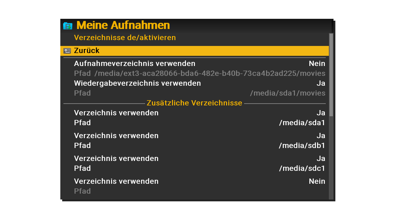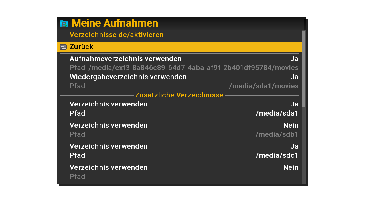 Im Wiedergabeverzeichnis steht wohl immer fest /media/sda1/movies und auf JA,hier darf/muss man nix ändern.?