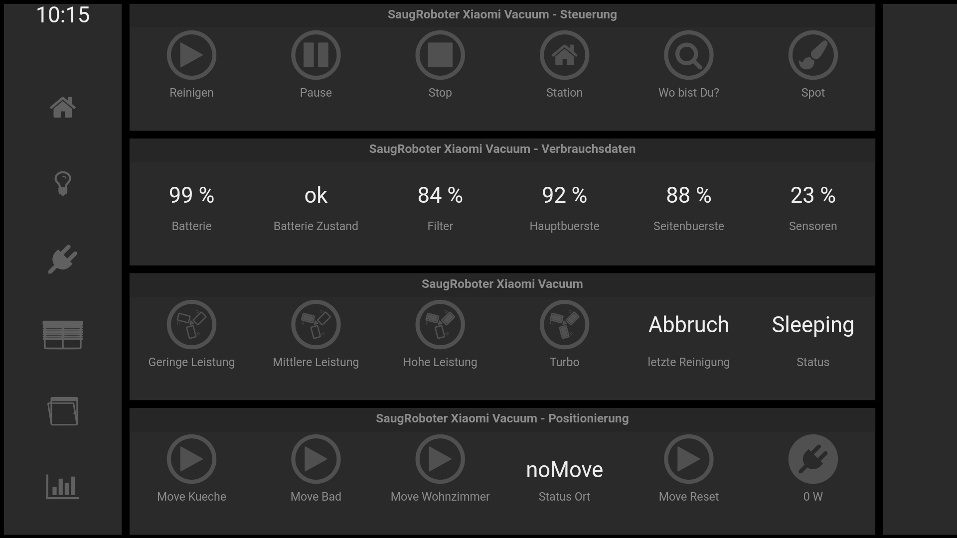 Ein xiaomi mi robot Staubsauger Roboter werkelt nun in Kombination von anderen Aktoren selbstständig im Haus.