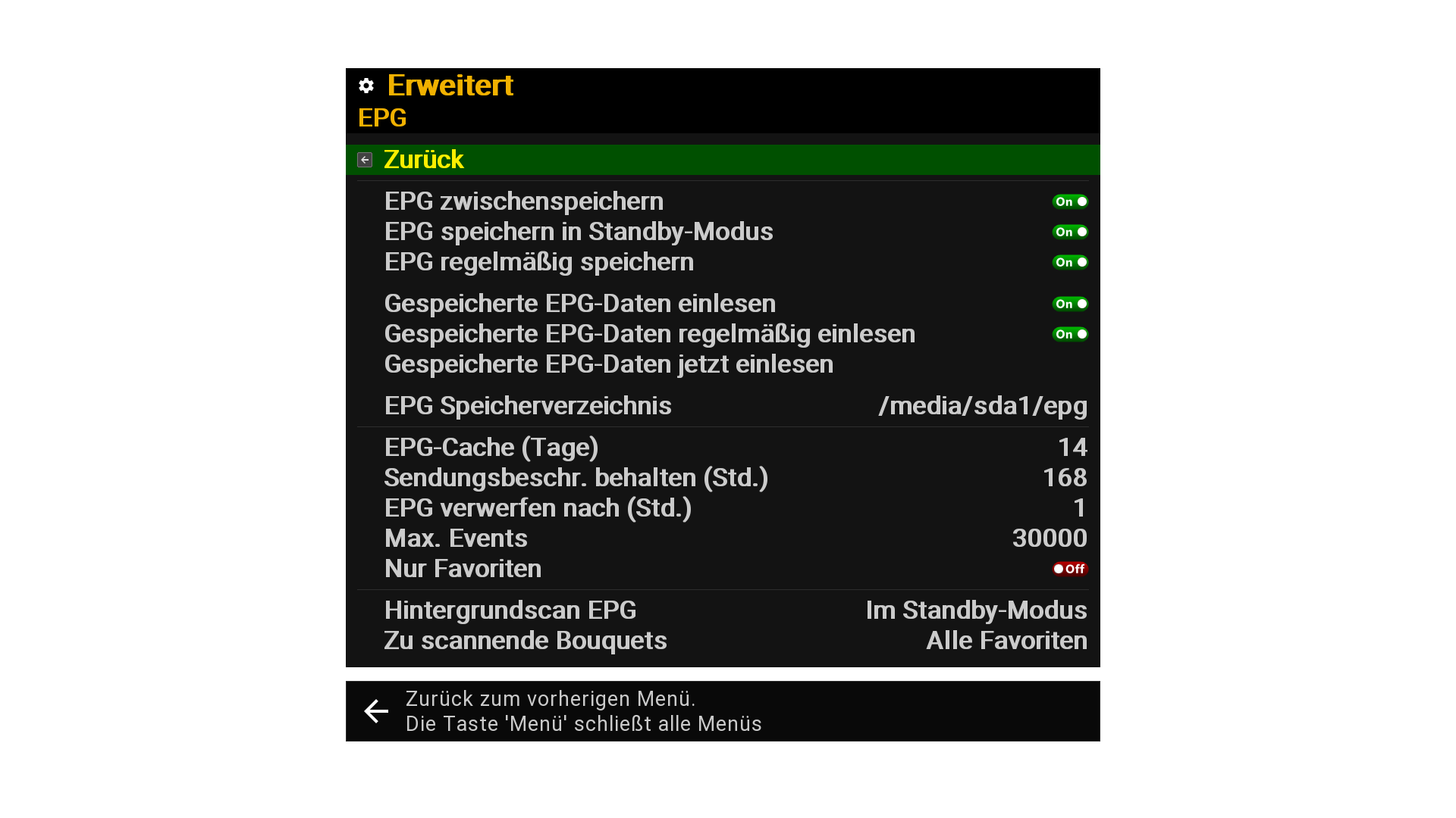 Wenn ich dann in den EPG-Einstellungen manuell "Gespeicherte EPG-Daten jetzt einlesen" ausführe, dann sind die EPG-Daten da.