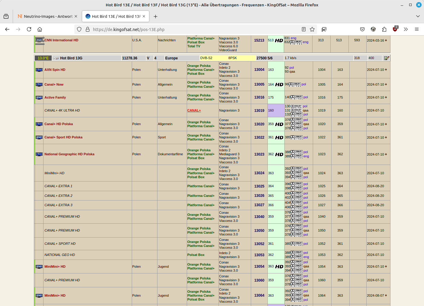 ich habe seit der FEC Umstellung einiger Transponder des polnischen NC+ Pakets ein Problem, die Kanäle zum empfangen, wobei Kanäle Transpondern ohne Umstellung weiter normal funktionieren. Natürlich habe ich eine neue satellites.xml + Kanallisten eingespielt und die NEO2 neu gestartet, keine Chance. Es kommt immer "Kanal zur Zeit nicht verfügbar, wobei ich EPG Daten angezeigt bekomme. Hat jemand eine Idee, was ich falsch mache?
